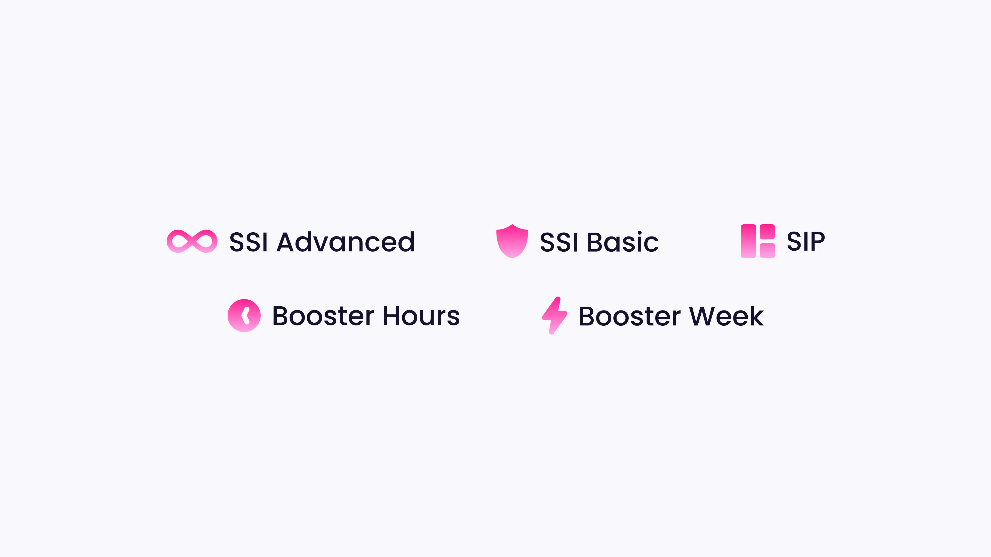 The icon set is a toolbox for creating supporting graphics and they are based on Google Material Symbols & Icons. The icons are always used with a magenta gradient color. The weight must be 300.