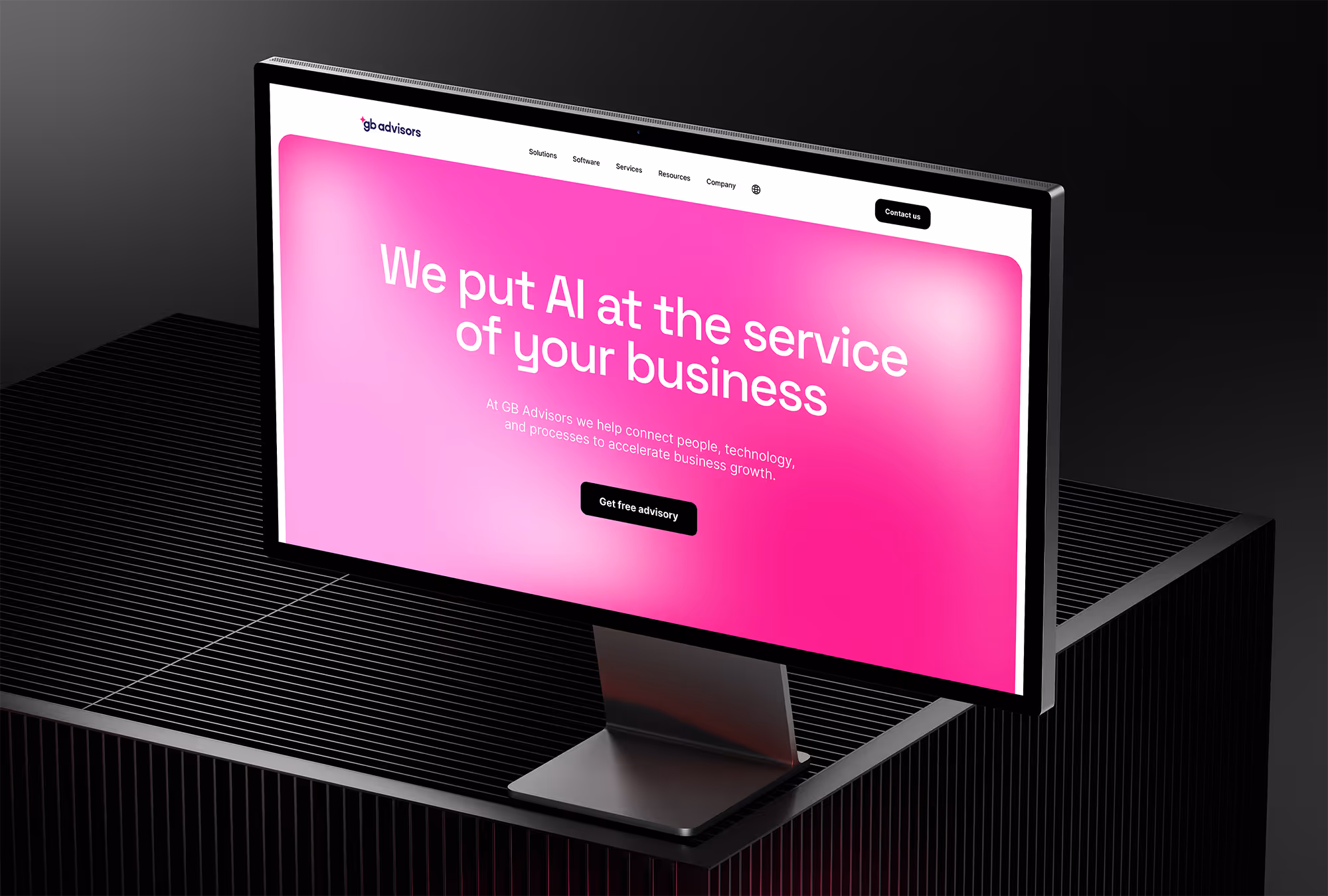 The new concept reimagined GB Advisors as strategic consultants and providers of leading SaaS solutions, combining professionalism and credibility with a bold AI-driven vibe. I built a consistent, scalable design system with templates, unified the visual language across multiple domains in 2 languages, and created comprehensive brand guidelines.